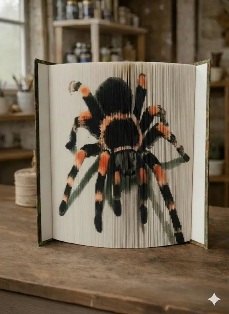 Osez l’inattendu avec Gardienne des Ombres, une œuvre fascinante où le mystère s’invite entre les pages. Sculptée avec précision, une araignée apparaît, semblant surgir du livre comme sortie d’un recoin secret.